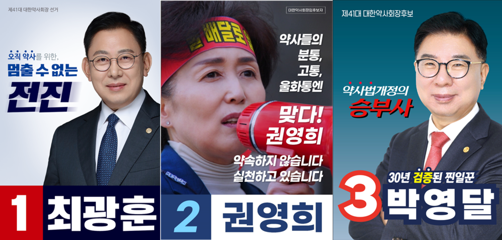 이번 대한약사회장 선거에 나선 기호 1번 최광훈, 기호 2번 권영희, 기호 3번 박영달 등 세 후보는 59일간의 선거 운동 기간 초중반까지 클린 선거로 가는 듯 보였으나, 후반으로 갈수록 치열을 넘어 각종 논란과 의혹으로 점철된 네거티브 선거를 전개했다.