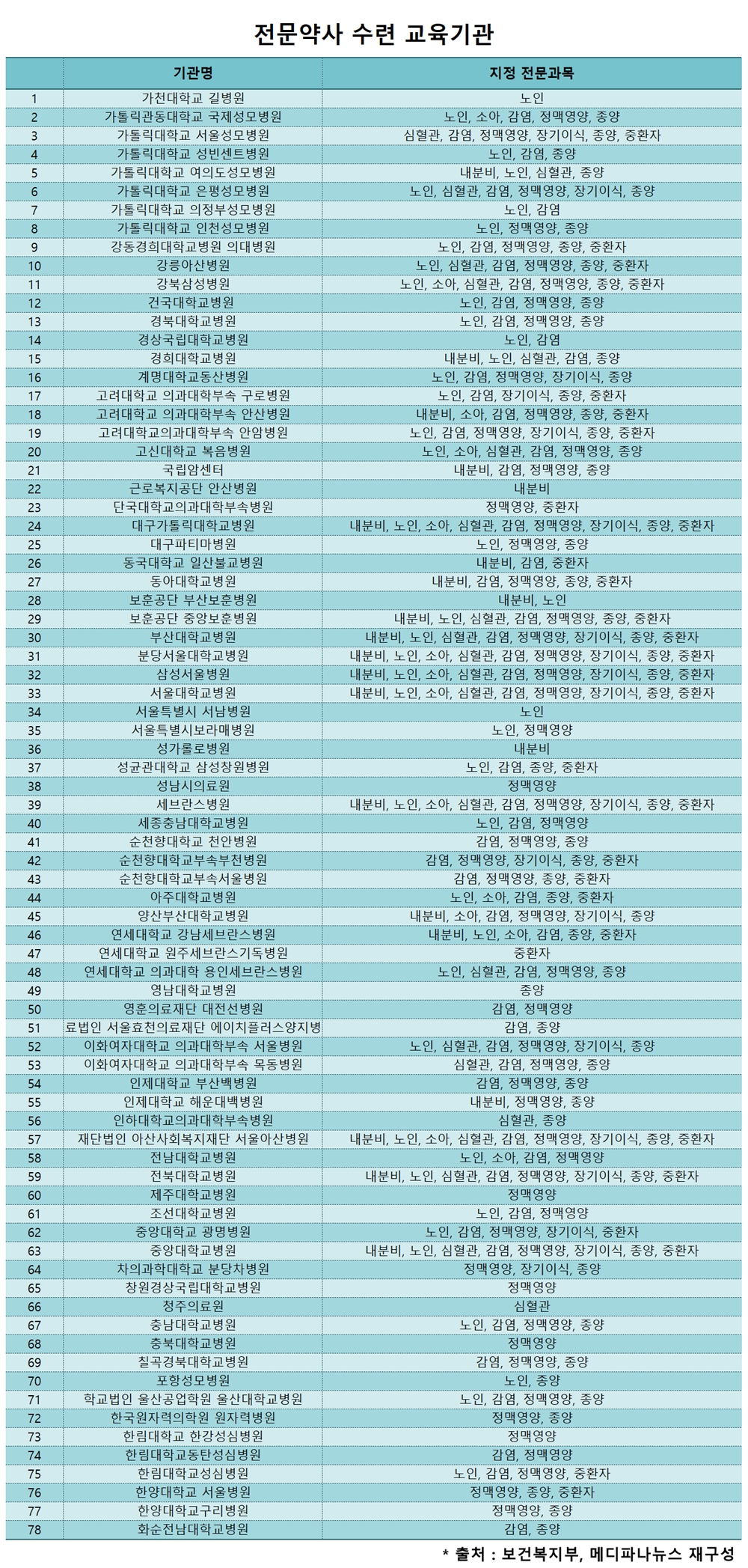 78개 수련 교육기관 인정 유효기간은 3년이다. 3년 후 재평가를 통해 고시에서 제외될 수도 있다.