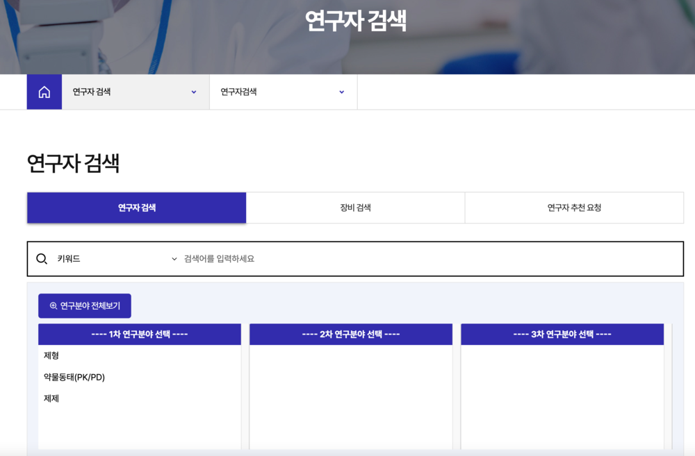 해당 시스템은 한국제약바이오협회 홈페이지 내 '디지털 도서 정보관 > 유관 정보포털 > 연구자/연구장비 정보 > 산학협력 연구자 DB 검색' 메뉴를 통해 접속할 수 있다. 또한, 한국약제학회의 홈페이지를 통해서도 동일하게 접속 가능하다.