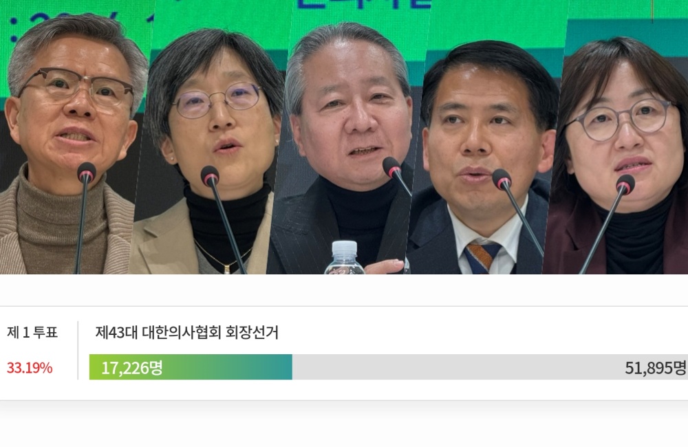 2일 의료계에 따르면 43대 의협회장 선거 첫날 투표율은 오후 6시 기준 33.19%로 확인된다. 투표권을 가진 회원 5만1895명 가운데 1만7226명이 투표를 완료했다.