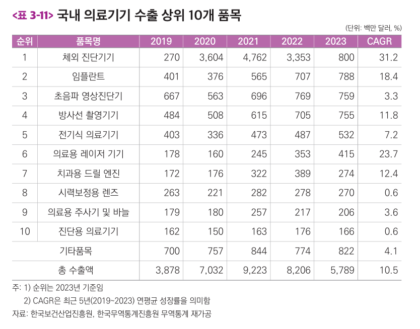 이와 함께 초음파 영상진단기, 방사선 촬영기기 수출액도 매년 상승하며, 수출 상위 품목 2, 3위를 기록했다.
