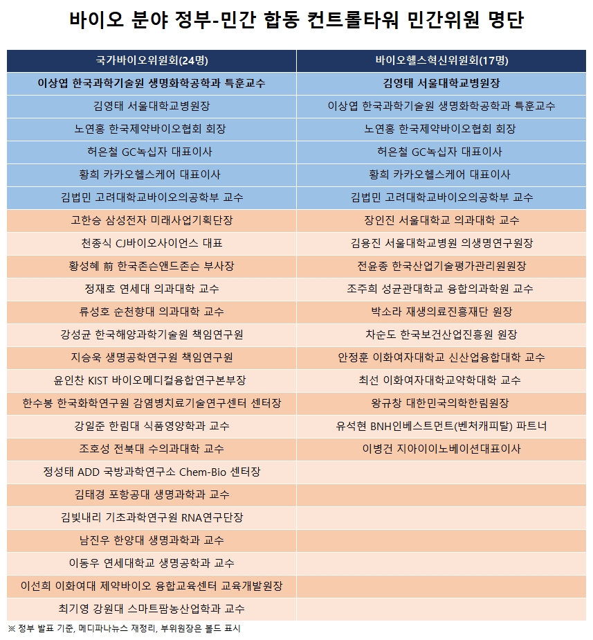 이들은 앞서 구성됐던 바이오헬스혁신위원회에서도 민간위원으로 위촉된 바 있다.