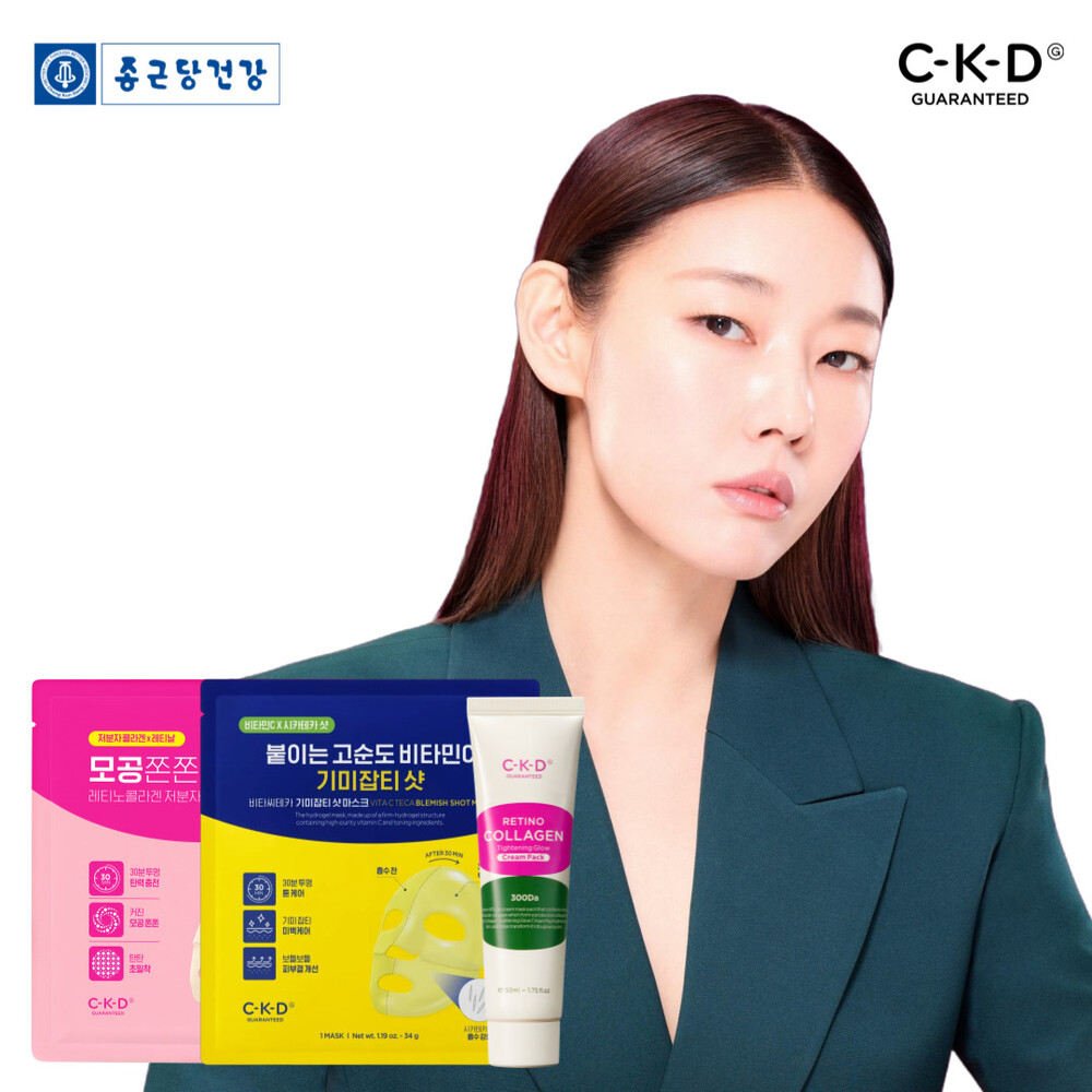 CKD 레티노콜라겐 모공탄력 마스크와 비타씨테카 기미잡티샷 마스크는 누적 판매량 350만장을 돌파해 소비자들의 꾸준한 사랑을 받고 있는 CKD 베스트셀러 마스크팩이다.