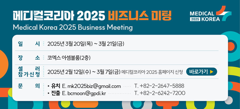 이번 비즈니스 미팅은 보건복지부가 주최하고, 진흥원이 주관하는 '메디컬코리아 2025(Medical Korea 2025) - 제15회 글로벌 헬스케어 & 의료관광 콘퍼런스'의 연계 행사로, 외국인환자 신규 유치채널 발굴 및 해외 조달시장 진출을 희망하는 국내 의료기관과 보건산업체를 대상으로 무료로 진행한다.
