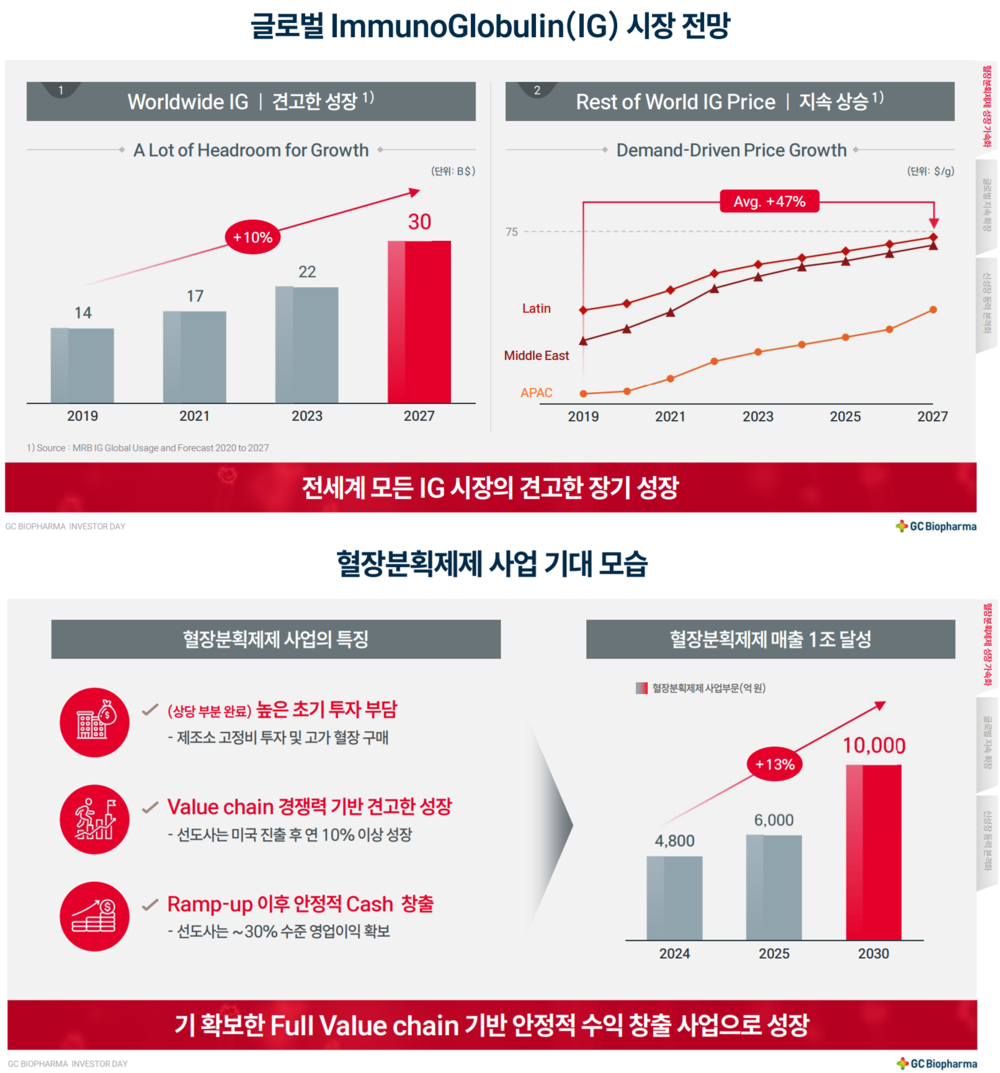 이는 전 세계 모든 면역글로불린(IG, Immuno Globulin) 시장의 견고한 장기 성장세와 글로벌 알부민 시장의 안정적인 수요가 지속될 것으로 예상되면서 수익 창출이 증대될 것이라는 판단에 따른다.