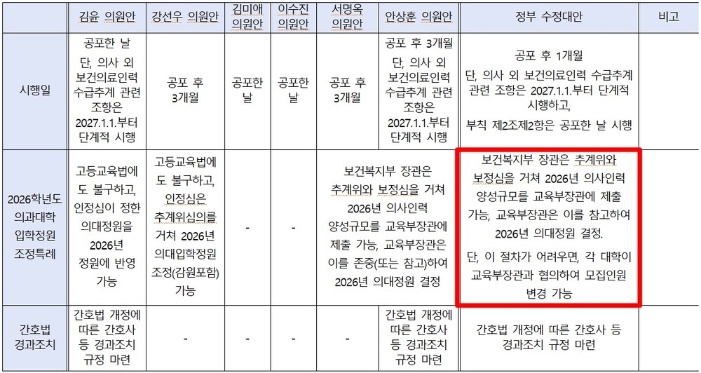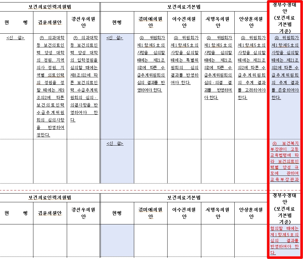메디파나뉴스가 18일 보건의료기본법 등 의료인력 수급추계위원회 구성을 골자로 한 법안에 대한 정부 수정대안을 확인한 결과 곳곳에서 의료계 의견과 배치되는 내용이 나타났다.
