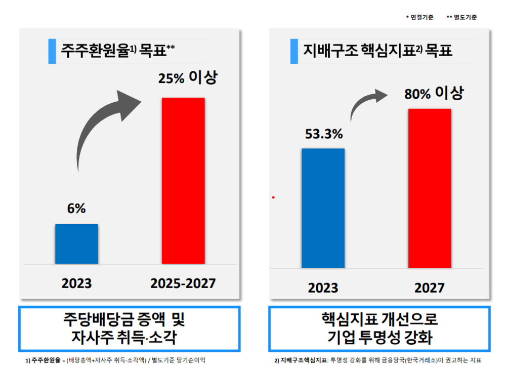 해당 계획에 따르면, 한미약품은 올해부터 2027년까지 주주 환원율 평균치를 25%로 올릴 예정이다. 또한 주식 1주당 배당금을 2027년까지 2023년 대비 200% 늘리고, 자사주를 취득해 단계적으로 소각하는 방식으로 주가 수익률을 개선한다.
