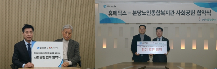 휴메딕스는 지역사회 내 경제적·정서적으로 어려움을 겪고 있는 지역 내 취약 어르신에게 안정적이고 지속적인 복지서비스를 지원하기 위해 분당노인종합복지관과 협약을 맺었다.