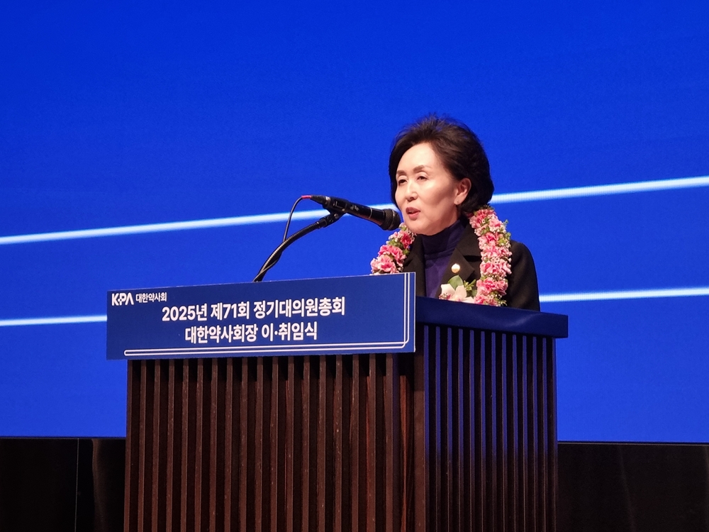 11일 서울 양재동 엘타워에서 개최된 '대한약사회 2025년 제71회 정기대의원 총회'에서는 본회의에 앞서 회장 이·취임식을 진행했다.