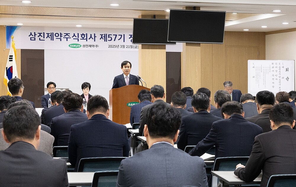 21일 오전 서교동 삼진제약 본사 강당에서 '제57기 정기주주총회'와 이사회가 개최됐다.