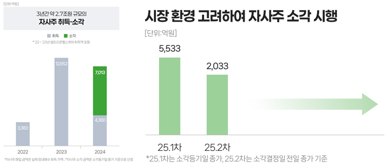 셀트리온 관계자는 메디파나뉴스와의 통화에서 "적극적으로 자사주 매입을 진행하고, 이를 통해 확보한 자사주 소각을 병행하고 있다"고 밝혔다.
