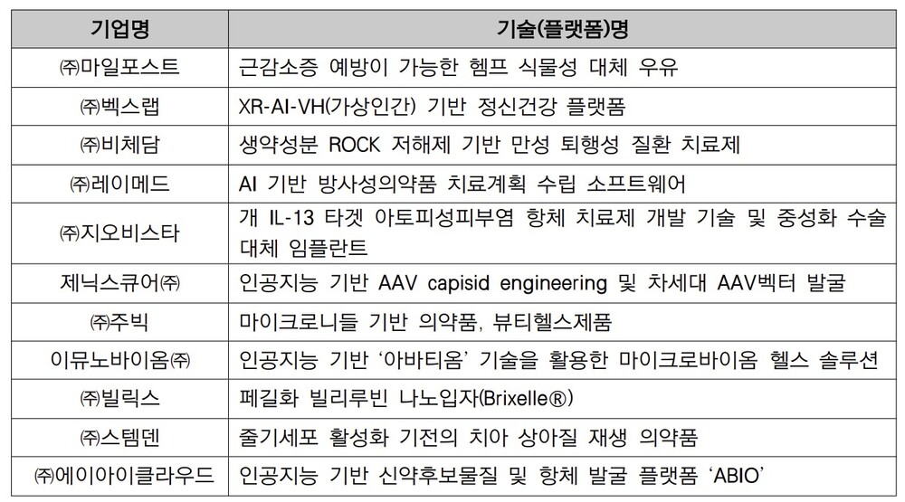 투자포럼은 국내 제약·바이오기업 등 기업 및 벤처캐피털 등 투자기관에게 유망기술 또는 플랫폼을 자체 보유하고 있는 바이오벤처··스타트업기업과의 네트워킹의 장을 마련해 우수 기술 발굴, 투자, M&A 등 상생협력 및 정보교류의 기회를 제공하기 위해 개최되며, 벤처·스타트업기업 11개사가 참여해 기업별 보유 역량과 연구개발 파이프라인 소개 및 제휴·협력 방안에 대한 IR을 진행한다.