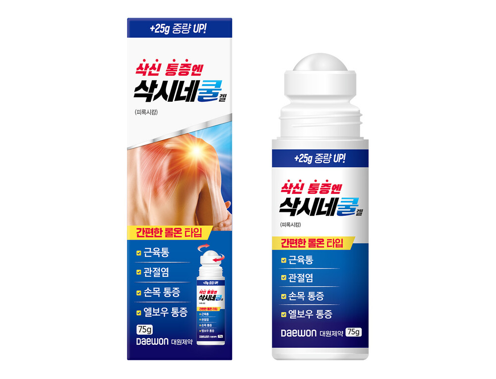 삭시네쿨은 1g 중 피록시캄 성분 5mg을 함유하고 있다. 총 용량은 75g으로 대부분의 겔 형태 제품보다 큰 대용량 제품이기 때문에 겔형 파스를 자주 사용하는 소비자들에게는 반가운 소식이다.
