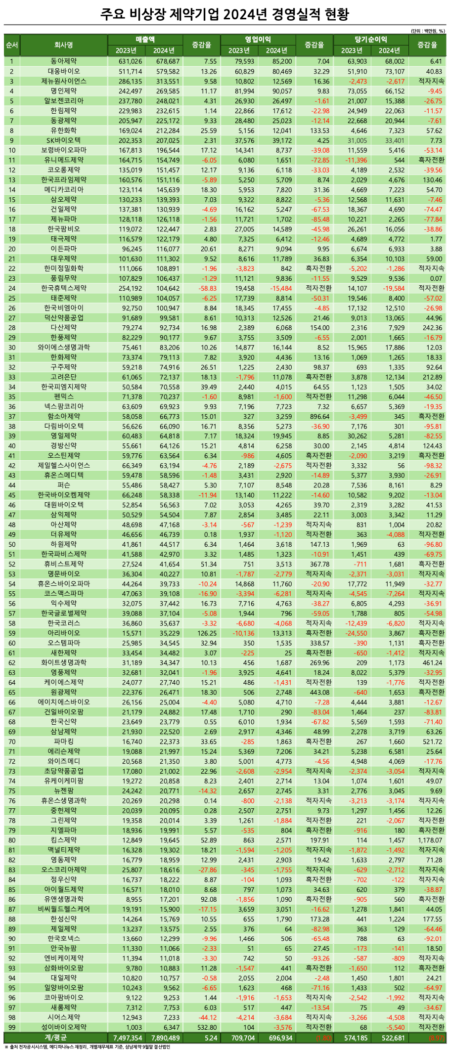 해당 기간 99개 비상장 제약기업들이 기록한 영업이익은 1.8% 감소한 6969억원이었으며, 순이익은 8.97% 감소한 5227억원으로 집계되며 수익성 면에서는 부진한 흐름을 보였다.