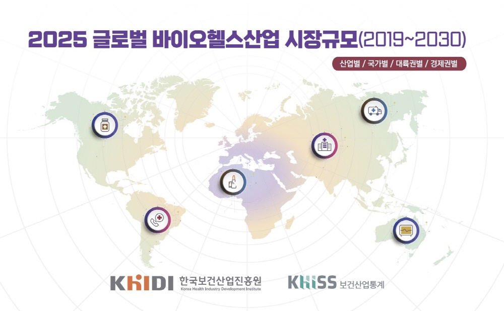 '2025 글로벌 바이오헬스산업 시장규모(2019~2030)'는 보건산업통계포털과 진흥원 누리집에서 확인할 수 있다.