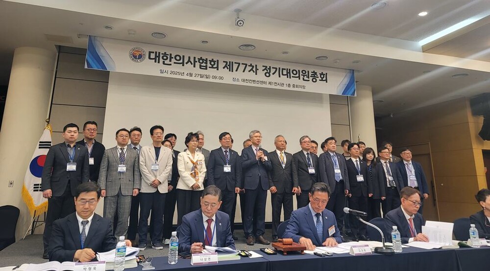 27일 대전컨벤션센터에서 열린 제77차 대한의사협회 정기대의원총회에는 1년 넘게 이어진 의정 갈등과 의료계 위기 상황을 타개하기 위한 심도 깊은 논의가 이어졌다. 총회장 곳곳에는 의료계 정상화를 향한 절박함과 단호한 결의가 감돌았다.