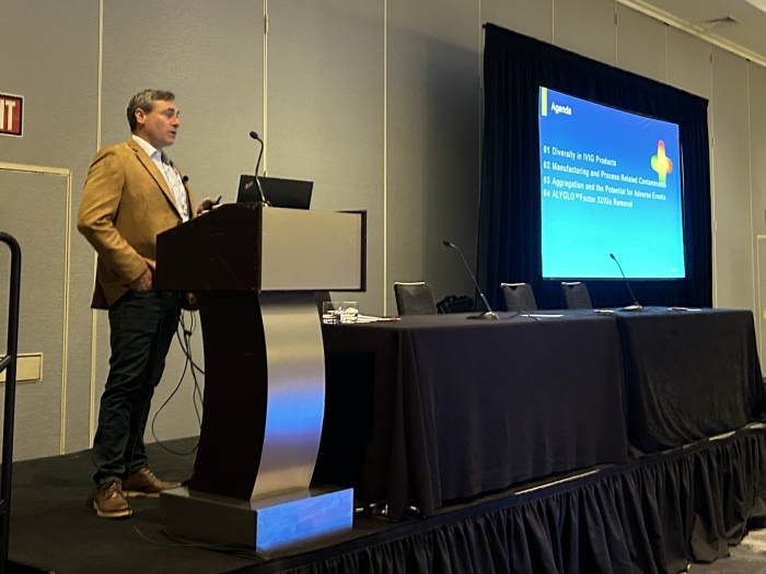 도프만 박사는 다양한 면역글로불린의 제품 간 차이로 약 25%의 환자에서 과민반응, 혈전, 신장 기능 저하 등의 이상반응이 발생할 수 있는데, 알리글로는 혈전 유발 인자(FXI/FXIa)를 효과적으로 측정 불가한 수준까지 제거했다는 점을 강조했다.