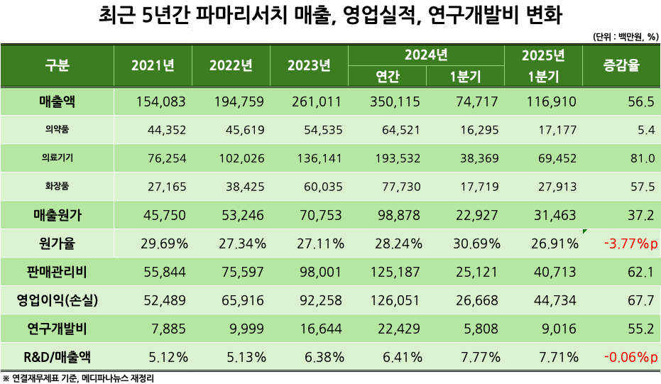 [메디파나뉴스 = 최인환 기자] 파마리서치가 해외로부터 의료관광 수요 확대와 함께 '리쥬란' 중심의 의료기기 판매 급증으로 외형과 수익성 모두 최고 실적을 경신했다. 경기 불확실성에도 고수익 제품 중심의 성장 전략과 글로벌 수요를 겨냥한 스킨부스터 브랜드 집중이 실적 호조로 이어졌다는 점에서 주목된다.