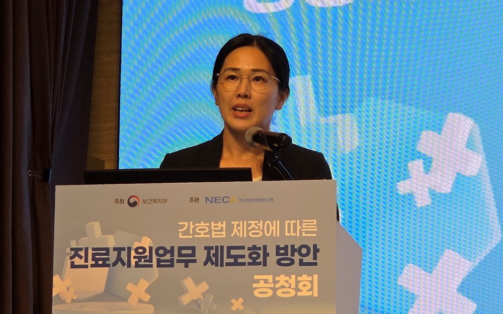 보건복지부와 한국보건의료연구원은 21일 오후 서울 용산구 소재 피스앤파크에서 '간호법 제정에 따른 진료지원업무 제도화 방안 공청회'를 열고 '간호사의 진료지원업무 수행에 관한 규칙' 주요내용을 공개했다. 발표는 박혜린 보건복지부 간호정책과장이 맡았다.