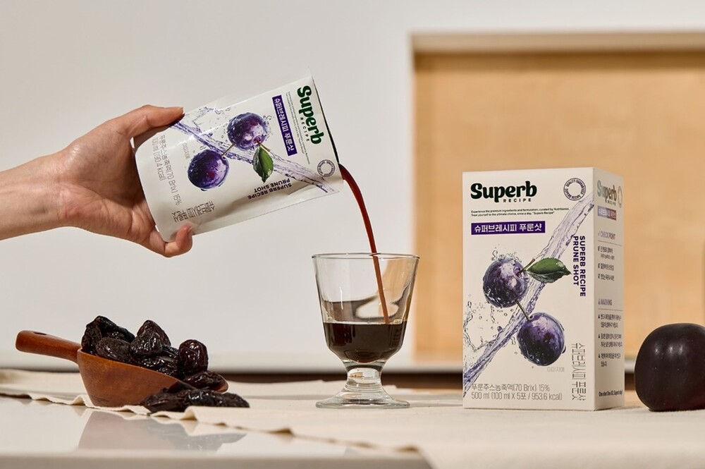 이번에 출시한 '슈퍼브레시피 푸룬샷'은 식이섬유가 풍부한 푸룬(서양 자두)을 활용한 제품으로, 미국산 푸룬을 사용해 고품질 원료를 그대로 담아낸 것이 특징이다. 한 포당 푸룬 17.7g이 함유돼 있으며, 푸룬의 핵심 성분인 '솔비톨'이 장 내 수분량을 높여 변을 부드럽게 만들어주고, 빠른 시간 내 배변 활동을 유도하는 데 효과적이다.