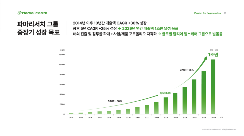 파마리서치는 이번 지주회사 체제 전환이 단기적인 구조 정비가 아닌, 중장기 비전 달성을 위한 전략적 수단이라고 강조했다. 회사는 2029년까지 연결 기준 연매출 1조원 달성을 목표로 제시하고 있으며, 이를 위해 사업별 독립성과 자율성을 강화하고 투자·조직 효율성을 극대화하는 구조 개편이 반드시 필요하다고 보고 있다.