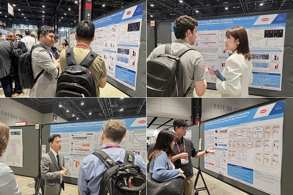 한미약품은 지난 20일부터 23일까지 미국 시카고에서 열린 '미국당뇨병학회(ADA 2025)'에 참가해 '차세대 비만치료 삼중작용제(LA-GLP/GIP/GCG, HM15275)'와 '신개념 비만치료제(LA-UCN2, HM17321)' 등 총 6건의 전임상 및 임상 연구 결과를 포스터로 발표했다.