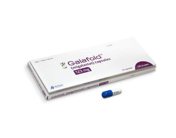 갈라폴드는 기존 정맥 주사를 통해 외인성 효소를 주입하는 효소대체요법과 다르게 환자가 갖고 있는 효소가 제기능을 할 수 있도록 돕는 내인성 기전을 갖고 있으며 작은 분자량으로 체내 넓게 분포할 수 있다.