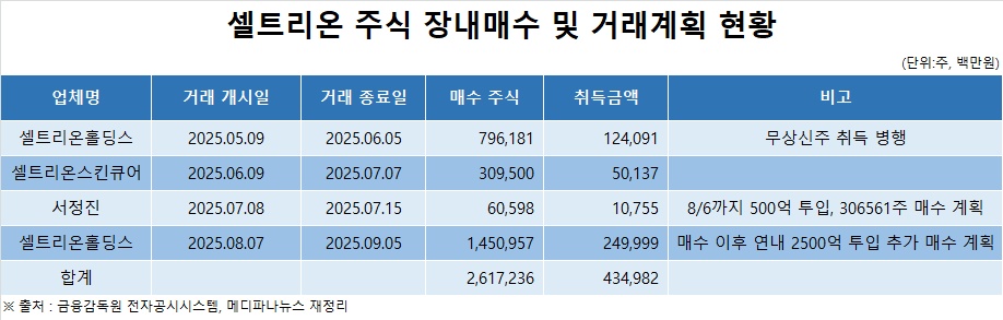 셀트리온홀딩스는 여기서 그치지 않고 이후 한 차례 더 2500억원 규모로 장내매수에 나설 방침인데, 이 경우 올 한 해에만 장내매수에 5000억원을 투입하게 된다.