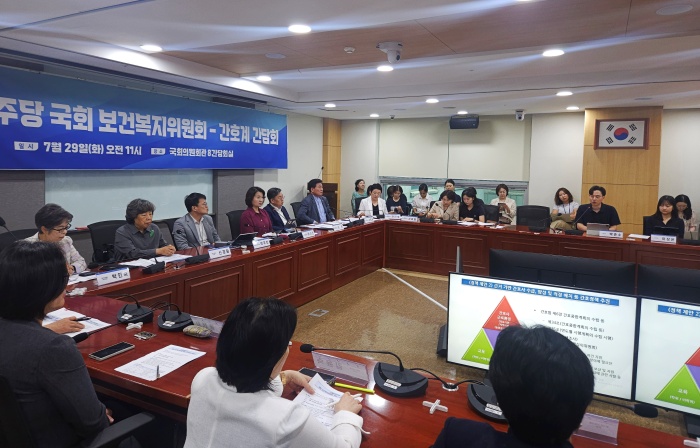이날 간담회에는 박주민 보건복지위원장을 비롯해 이수진 간사, 김윤·전진숙·소병훈 위원이 참석했다. 간호계에서는 대한간호협회 신경림 회장, 홍정희 간협 부회장 겸 병원간호사회장, 김윤숙 간협 이사 겸 서울성모병원 간호부장, 김정미 경기도간호사회 회장, 최훈화 간협 전문위원, 김경선 인천사랑병원 본부장 등이 참석했다.