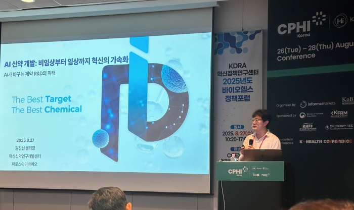27일 서울 삼성동 코엑스에서 열린 'CPHI/Hi Korea 2025' 컨퍼런스에서 권진선 파로스아이바이오 센터장은 '인공지능 활용 신약개발 비임상과 임상단계에서 적용사례'을 주제로 발표에 나서, 단순한 타깃 탐색을 넘어 비임상·임상 설계와 예측, 환자 선별까지 AI가 신약개발의 전략적 의사결정에 개입하고 있다고 강조했다.