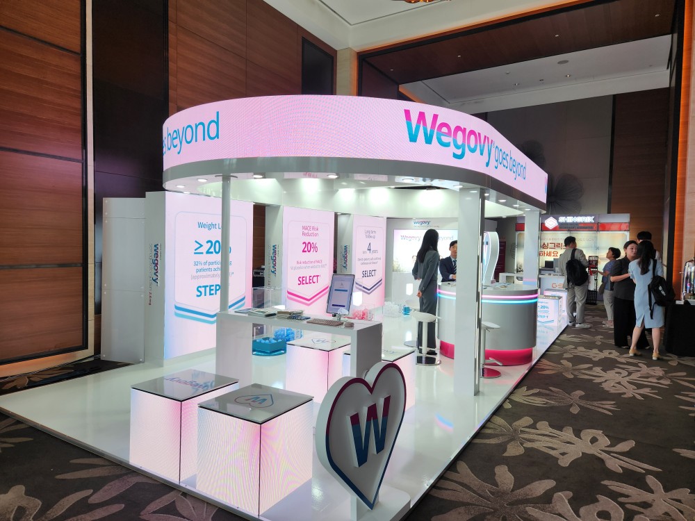 ICOMES 2025 등록 데스크를 지나 가장 먼저 반기는 건 위고비 홍보 부스였다. 한국 노보노디스크는 관련 부스 구성에 예년보다 더욱 힘을 준 모습이었다. 위고비 대항마인 마운자로 국내 출시가 최근 이뤄지면서다.