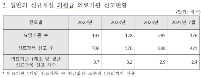 국회 보건복지위원회 소속 전진숙 더불어민주당 의원이 7일 건강보험심사평가원에서 제출받은 자료에 따르면, 올해 1월부터 7월까지 일반의가 새로 문을 연 의원급 의료기관은 176곳으로 집계됐다. 지난해 같은 기간(129곳)보다 36.4% 증가한 수치다.
