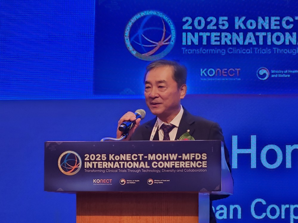김열홍 유한양행 연구개발(R&D) 사장이 22일 서울 소공동 롯데호텔에서 열린 ‘2025 코넥트 임상시험 국제 콘퍼런스(KIC)’에 기조강연을 맡아 비소세포폐암 신약 '렉라자(레이저티닙)'의 글로벌 성공 비화를 공개했다.