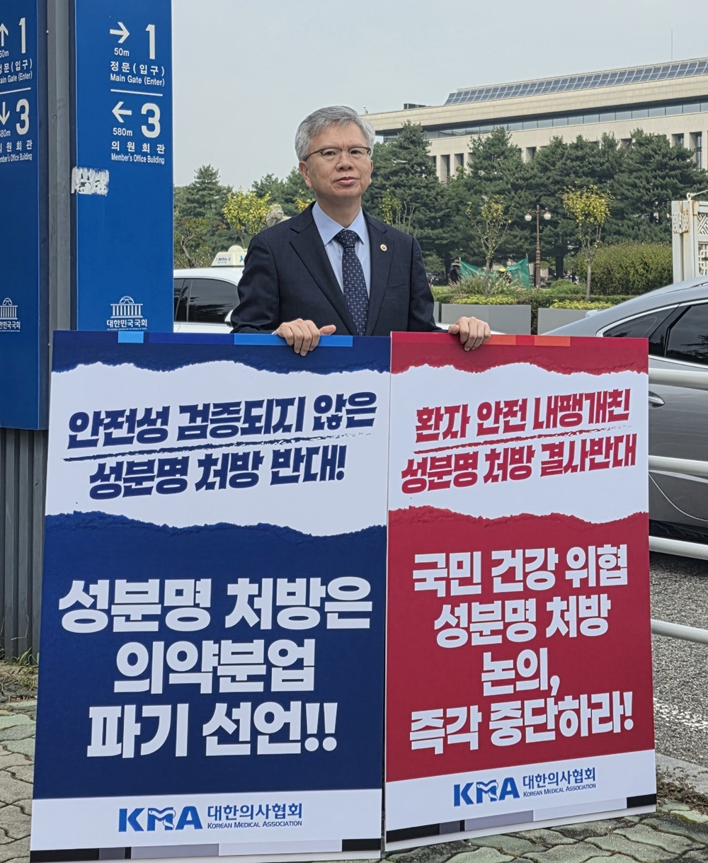 김 회장은 "잘못된 성분명 강제 처방에 저항해 오늘부터 이 자리에서 의협의 1인 시위를 이어갈 것이다. 국회와 정부, 약사단체는 법안 논의를 즉각 중단하고, 환자선택분업 도입을 통해 국민 편익을 높이고 의료의 기본원칙을 회복할 것을 강력히 촉구한다"고 말했다.