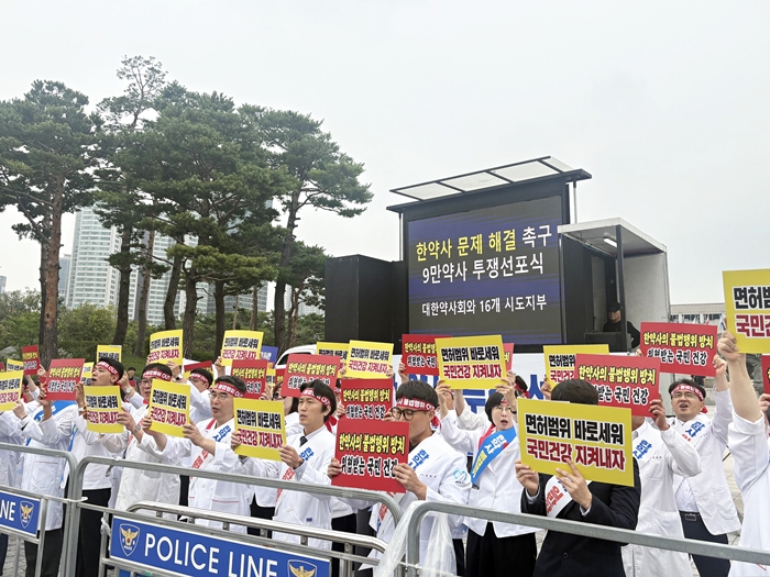 이어 "현행법상 한약사는 '한약과 한약제제에 관한 업무'만을 담당하도록 명확히 규정됐다. 그럼에도 불구하고 한약사들은 면허 범위를 벗어나 일반의약품을 불법적으로 판매하고 있다"며 "정부의 방치는 한약사의 불법 행위를 만연하게 만들었고, 국민들이 안전하게 의약품을 사용할 수 있는 환경을 심각하게 위협하고 있다. 우리는 이 불법 판매를 무자격자의 의약품 판매로 간주하고 즉각 처벌할 것을 요구한다"고 밝혔다.