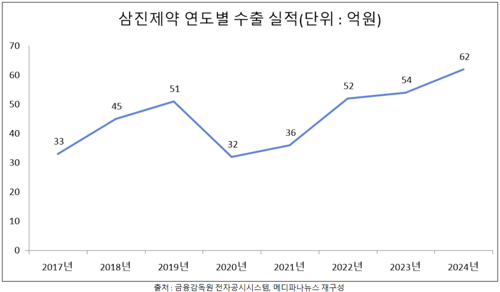 수출 실적 성장 흐름은 올해 상반기까지 이어졌다. 삼진제약 올해 상반기 수출액은 30억원으로 전년 동기 대비 12.7% 증가한 것으로 나타났다.