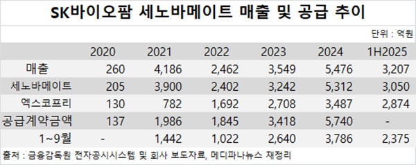 SK바이오팜 관계자는 이날 메디파나뉴스와 통화에서 "공급계약 규모가 줄어든 건 매출이 늘어나면서 공시 대상 건이 적어진 영향 때문이다. 계약금액이 최근 매출액 대비 일정 비율을 넘어야 하는데 매출이 늘면서 대상 건이 줄어든 것"이라며 "관세 관련 불확실성이 커지면서 물량을 미리 넘겨 두고 있는 것으로 안다"고 설명했다.