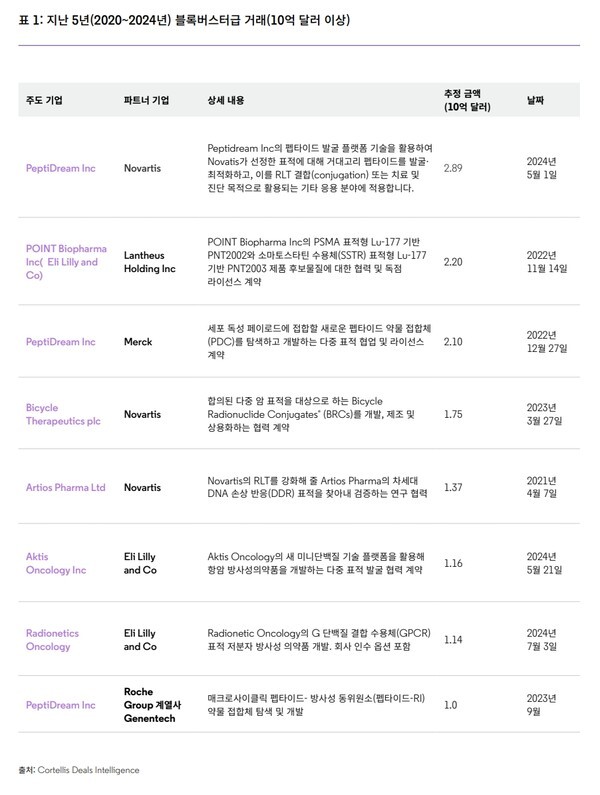 Cortellis Deals Intelligence에 지난 5년간 공개된 10억달러(1조4463억원) 이상의 블록버스터급 거래를 살펴보면, 빅파마들이 RLT 역량과 파이프라인 보완을 위해 전략적인 투자를 하고 있음을 확인할 수 있다.