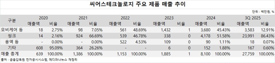 3분기 누적 매출 가운데 86.43%에 해당하는 240억원이 씽크를 통해 발생했다. 지난해 3분기까지 2억원에 불과하던 씽크 매출이 240억원으로 확대된 것이다.