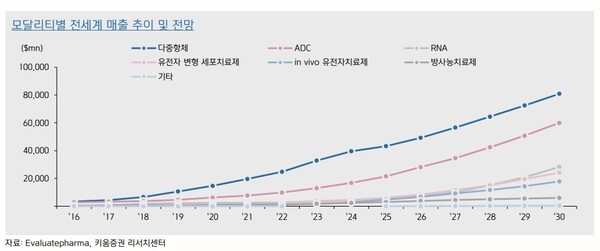 그러면서 다중항체, ADC, RNA치료제 순으로 성장이 이뤄질 것으로 예상했다. 이중항체의 경우 성공 가능성이 높으면서 높은 약가를 받을 수 있으며, RNA 분야는 IRA 약가 인하에 노출 될 수 있지만, 시밀러와 제네릭 우려가 적고 임상 성공 확률이 비교적 높은 데다 투여 편의성도 기대할 만하다는 설명이다.