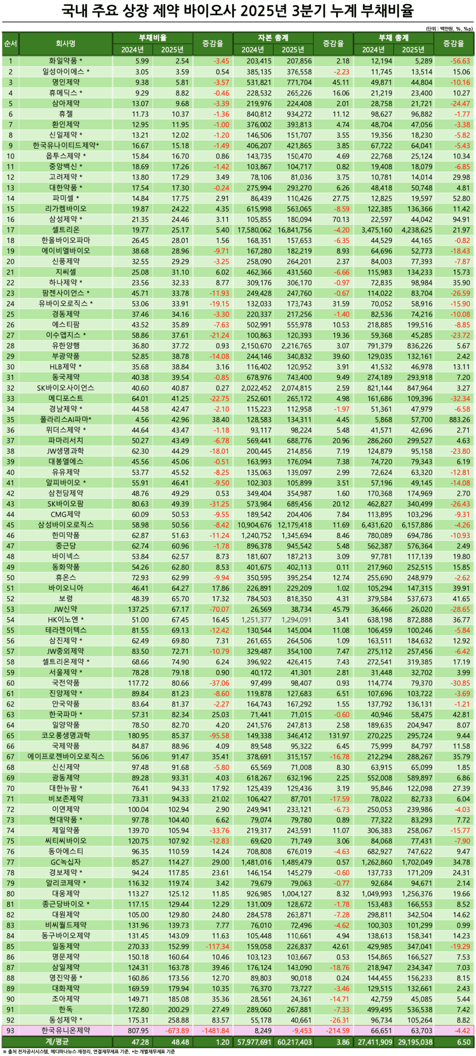 [상장 제약바이오기업 2025년도 3분기 누적 경영실적 분석 시리즈] ⑥부채비율