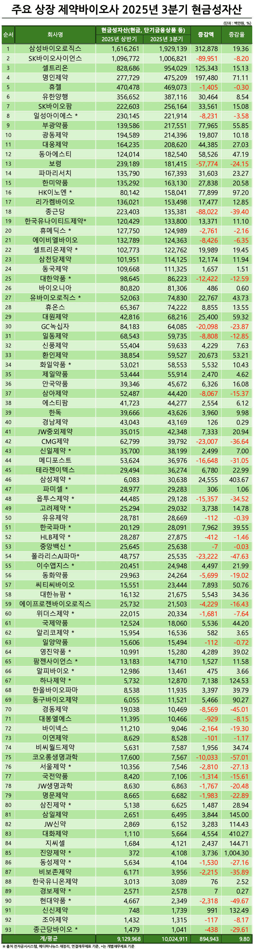 [상장 제약·바이오 기업 2025년도 3분기 경영실적 분석 시리즈] ⑧현금성 자산